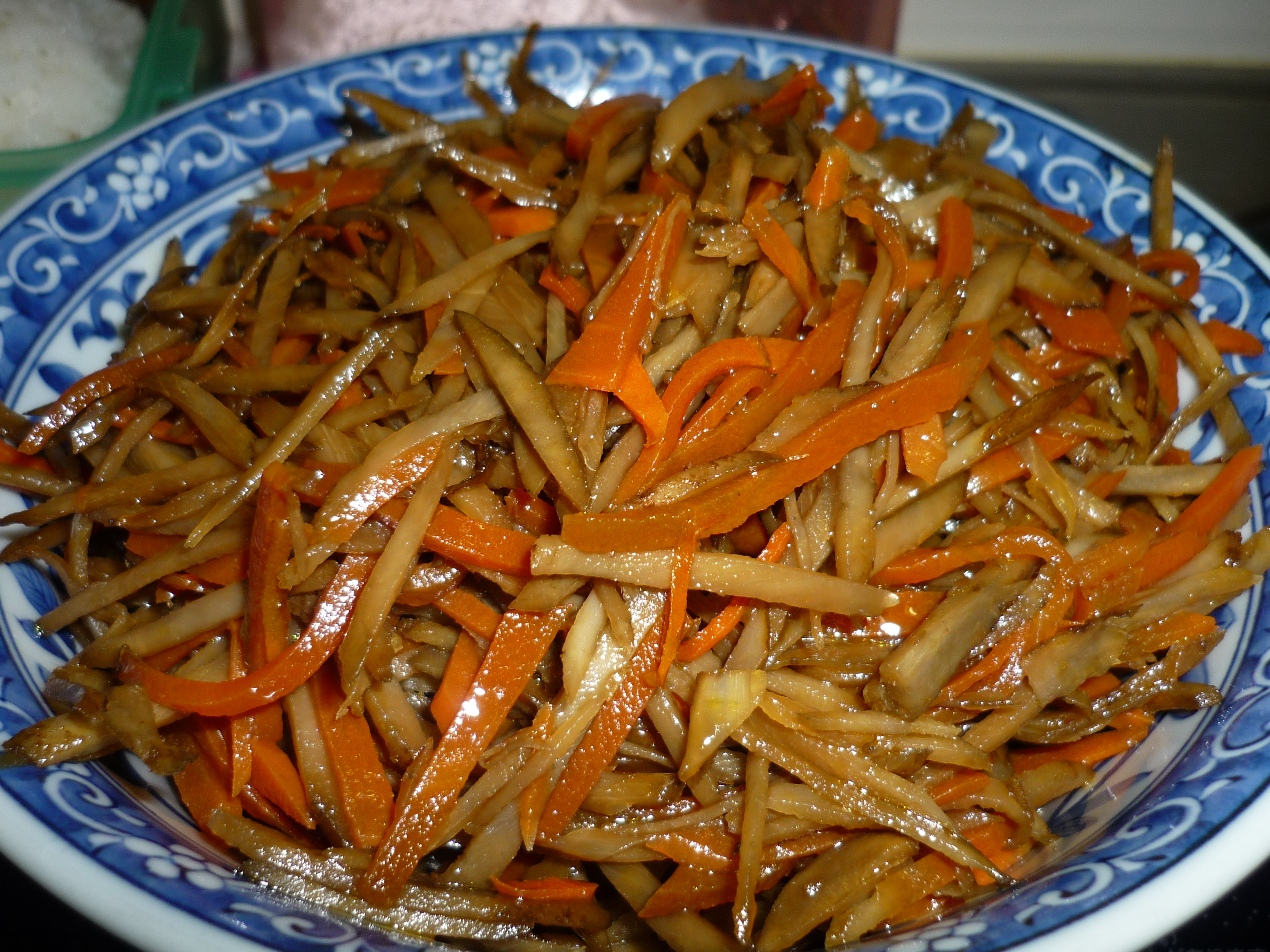 食材:ごぼう半分(50円)、にんじん半分(15円) 合計:65円