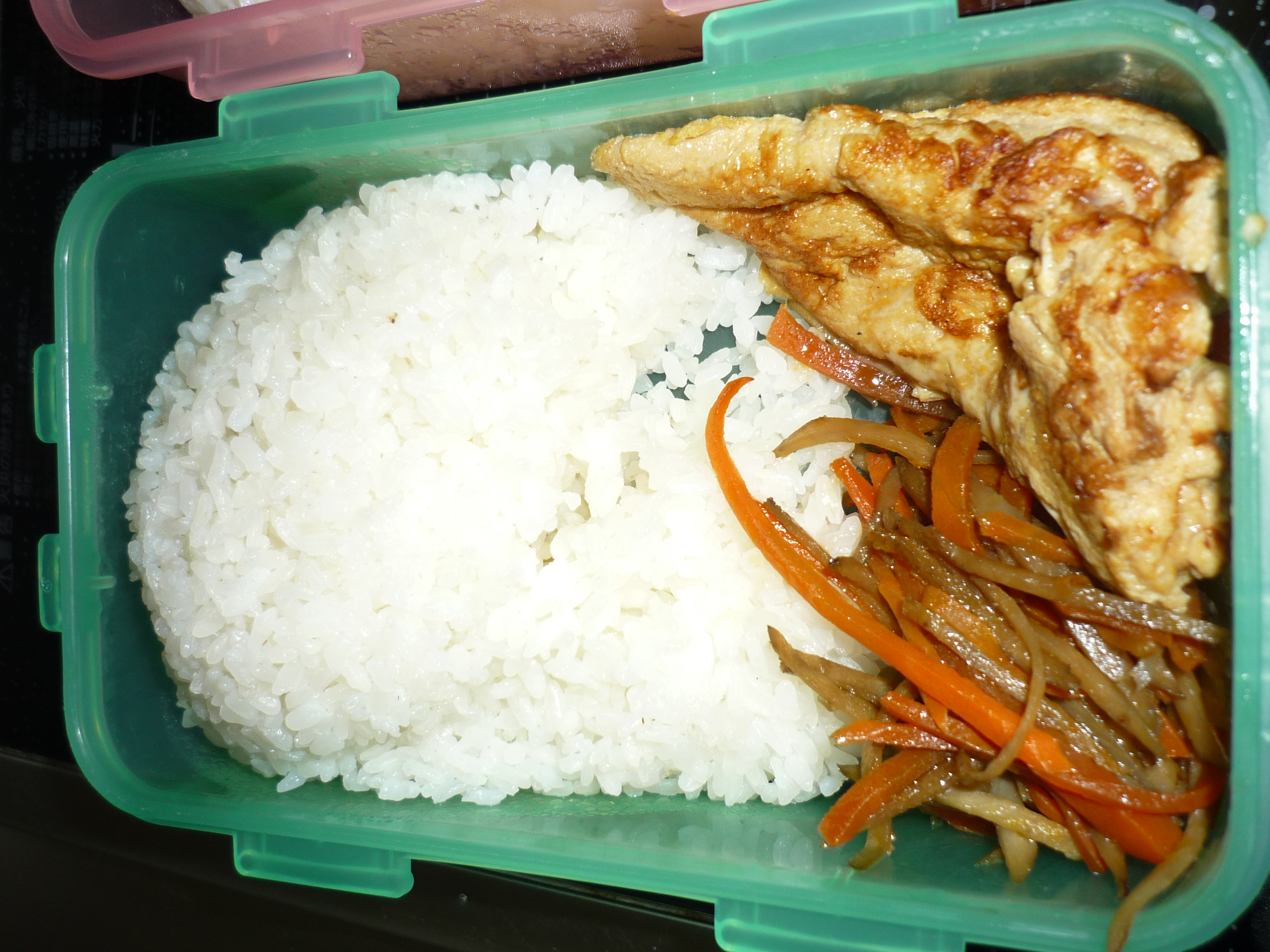 おかず:きんぴら(4.6円) たまご(10円) 合計:15円